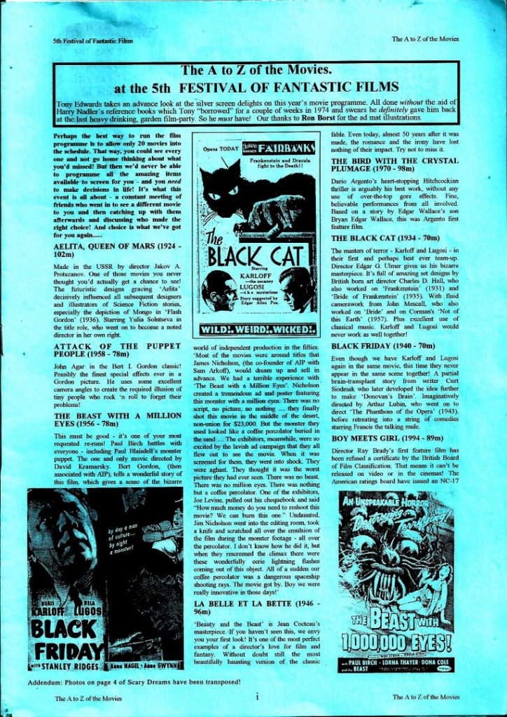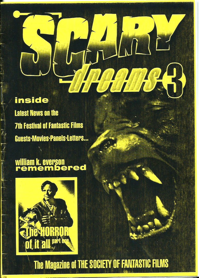 To close I’ve inlcuded the covers os several copies of ‘Scary Dreams’ the magazine published each year to co-inside with the ‘Festival of Fantastic Films’, plus a few programes. [17 onwards]