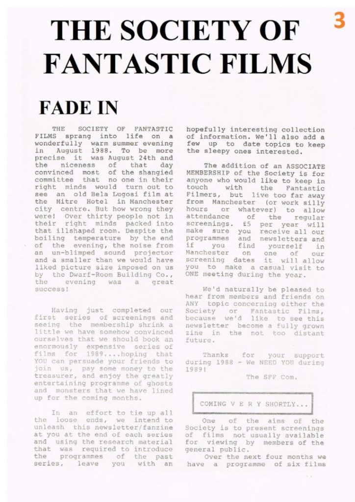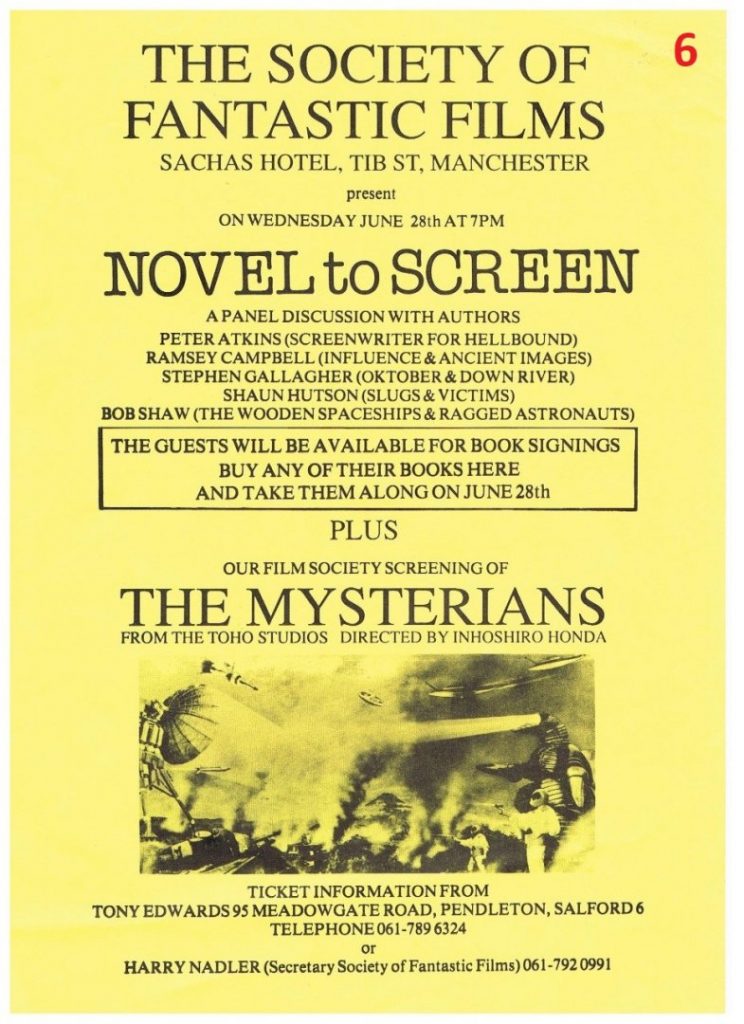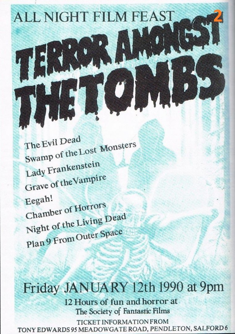 We now fast forward to 1988 and Harry, still thirsting for all things film, is taking a course on genre movies at Manchester University. Here he makes the acquaintance of Gil Lane-Young and after a few months they decide to form a film society to show and discuss genre movies. Harry invites his old friend Tony Edwards to be the Treasurer, while the author Ramsey Campbell is asked to take the position of President.
