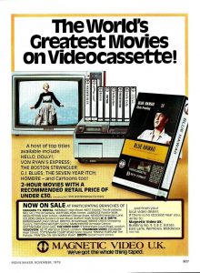 When Movie Maker added the subtitle ‘The Film and Video Monthly’ to its August 1980 cover it signaled what was to come and beckoned the beginning of the end… for a time anyway. Adverts from the video majors would now appear with regularity and even Derann advertised a few of its range in full colour in Movie Maker October 1982. The December issue of 1980s Movie Maker was the first to give an ‘Entertainment Film & Video Guide’, video recorders and cameras were regularly given test reports and by January 1982 Bill Davison was reviewing both 8mm and Video releases. In October 1983 Movie Maker changed its subtitle to ‘The Video and Cine Monthly’, it was also that same year that Walton Films closed down! There seemed to be clearance sales from every 8mm distributor and the amount of space devoted to video was a just a precursor of the things to come. The adverts of Video cassettes almost disappeared, but this was only because there were new magazines like ‘What Video?’, specifically aimed at that market. There was also a new breed of magazine for the ‘professionals’ like “Video Trade Weekly”. I was on the point of handing in my notice more than once, it was a bad time for me. Luckily I never made that decision, just look at what I would have missed out on.