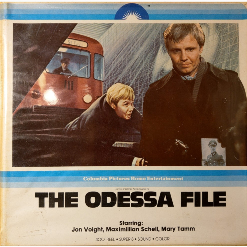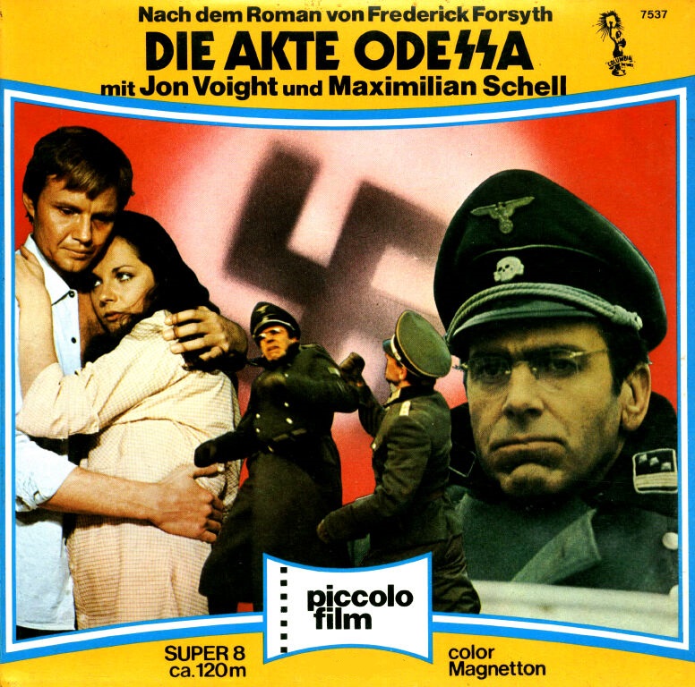 An article from a film publication dated December 1974 issue : This 1974 political thriller receives a 7.0 rating on the IMDb. Directed by Ronald Neame and starring Jon Voight, Maximilian Schell and Maria Schell it tells the story of a journalist in possession of man’s diary and his investigation into the alleged sighting of a former S.S. Captain, who commanded a concentration camp during World War II. Released as a 400′ from Columbia Home Movies and a 2×400 from piccolo in Germany. Box labels courtesy of Super8DataBase