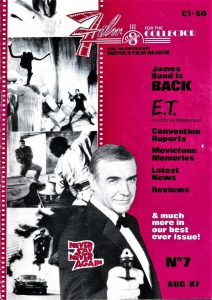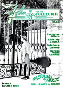 Originally only available as part of the membership to ‘The Derann Club’, a group who also had access to exclusive super 8 offers, it was launched in September 1985, a magazine of just 20 pages and looking like a large fanzine! Try as we might we couldn’t find writers who had the expertise or time to produce a regular column on cine cameras, projectors and the like, so it ended up being filled with articles on Super 8 releases, current cinema releases, film soundtracks, book reviews, and generally anything to do with the medium of film. Members were encouraged to send in their own articles on their home cinemas, film collections and cinematic experiences.