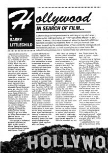 The addition of ‘Super Eight Film Review’ really gave FFTC some added punch and it quickly became a 40 page journal with the occasional 68 page special. To begin with the majority of the magazine was filled out with pieces written by members of the staff, The MD, Derek, never missed an issue unless he was away. Editor Dave Worrall was well traveled in the film world and he was always quick to put pen to paper. Mike Dimmock was a regular and yours truly produced a column picked from the pages of ‘Screen International’ and my library of ‘Films and Filming’.