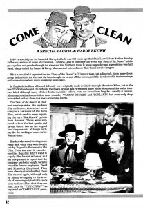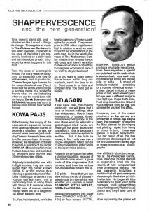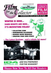 As the magazine grew and matured it attracted regular articles and reports from the likes of Barry Littlechild: His ‘Littlechild Report’ was witty and at the same time there was a little bite. Tony Shapps: Who had a regular two page feature devoted to Scope and 3D, entitled ‘Shappervescence’. David Oxland: Film Soundtracks. David Fulton, Tony Churcher, Edward J Laker, Phil Sheard: Whose love for Laurel and Hardy reached us in his column ‘Come Clean’. Barry Attwood: Current film reviews. Bryan Haynes: A film historian and his travels. Peter Haigh (who would supply the crossword puzzle from issue 40 onwards), Mark Silverster: Film related book reviews. John Bird: A Londoner’s thoughts and his day to day misadventures with film. There were numerous others including a number of customers who would supply ‘irregular’ columns including Tom Photiou: With his ‘Techy’ bit. Martyn Stribling, Stuart Reid, Tony Meadows, Graham Ritchie, Peter Wilson, John Bourne, Colin Tolman, Chip Gelmini, Steve Osbourne, to name just a few, they arrived from virtually all over the world. The German market was so big, that for a time that there was even a regular German language column from Michael Teubig. It was a long list, but without them there wouldn’t have been a magazine, a magazine that entertained and informed.